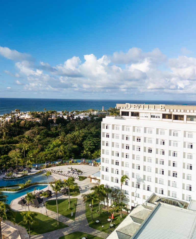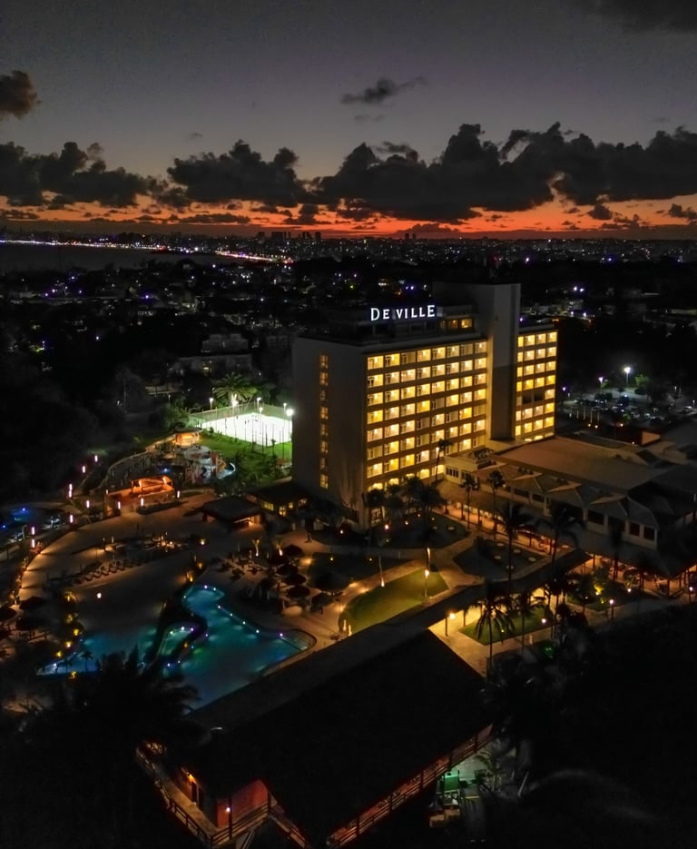 Para o Deville Prime Salvador, produzimos um pacote completo de conteúdo audiovisual. Além da captação aérea e banco de imagens para marketing, desenvolvemos um vídeo comercial para redes sociais mostrando a experiência e diferenciais do hotel.
