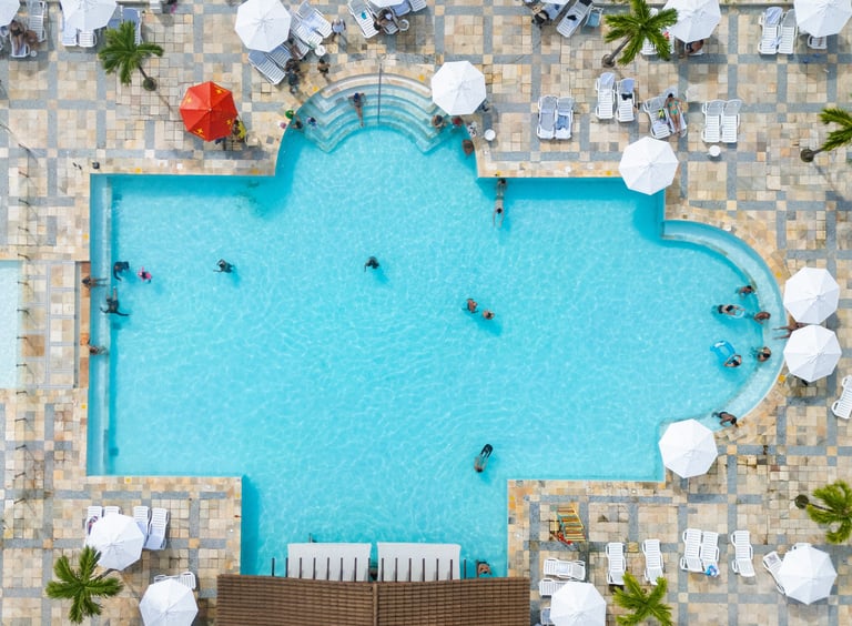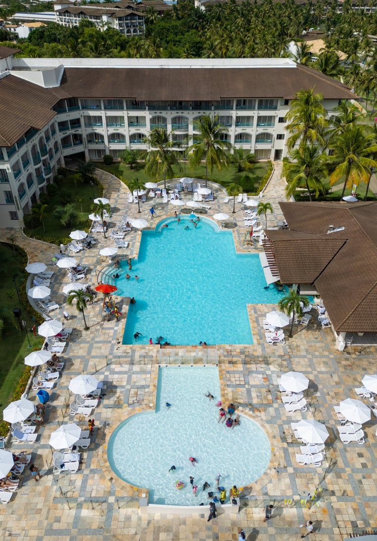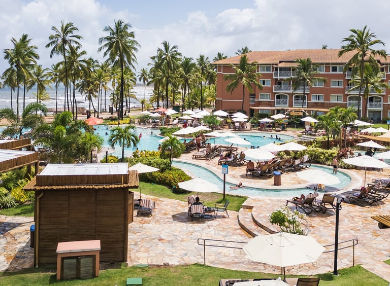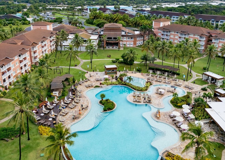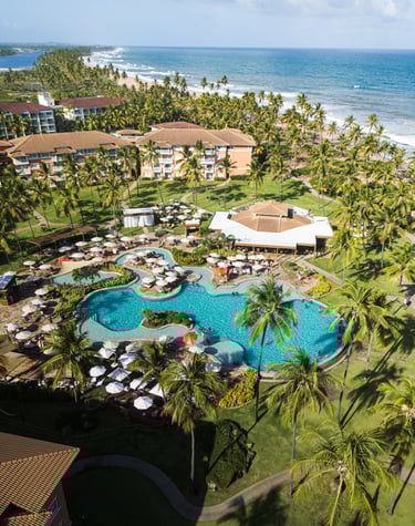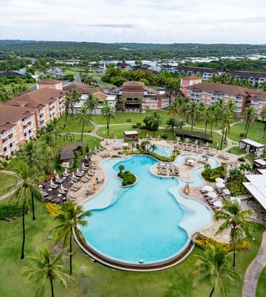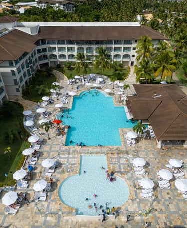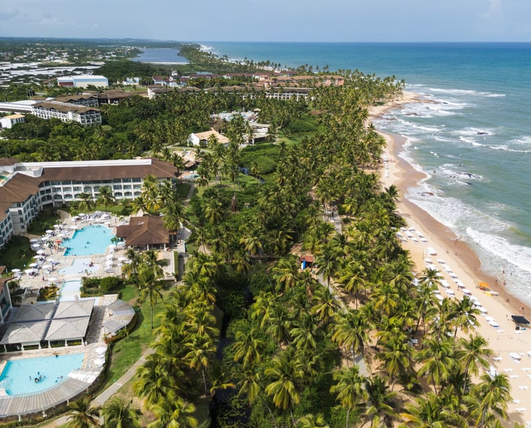 O trabalho foi focado na captação de vídeos e fotografias aéreas, evidenciando a dimensão do empreendimento, a organização dos espaços e a integração do resort com o cenário litorâneo da Bahia.